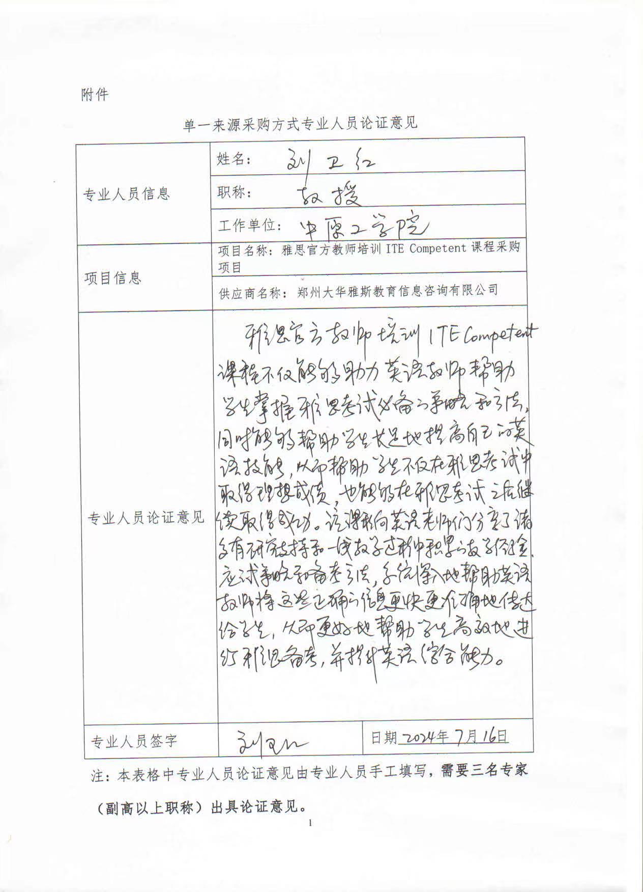 三、专家论证意见(不少于三名行业技术专家)